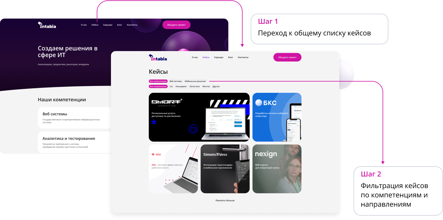Корпоративный сайт — витрина нашего опыта, компетенций и возможностей. Мы постоянно работаем над его развитием. В кейсах решения конкретных бизнес-задач. Ваш запрос может превратиться в одну из успешных историй сотрудничества с нами.